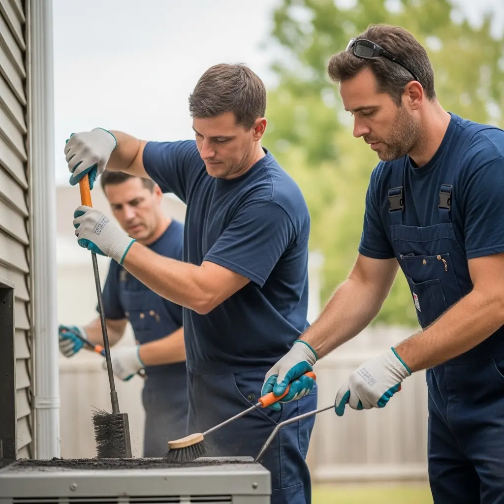 Signs include: smoke backing into your home, a strong musty or smoky odor, dark soot buildup around the firebox, or it has been more than a year since your last cleaning. When in doubt, call us — we’ll give you an honest assessment..